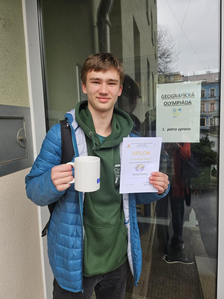 Na fotce vidíte Michala Krčmu, žáka naší školy a vítěze krajského kola zeměpisné olympiády a postupujícího do celostátního kola. Míšo jsme na tebe pyšní a děkujeme za vynikající reprezentaci školy i obce Perštejn. Podrobnosti přineseme v další zprávě.