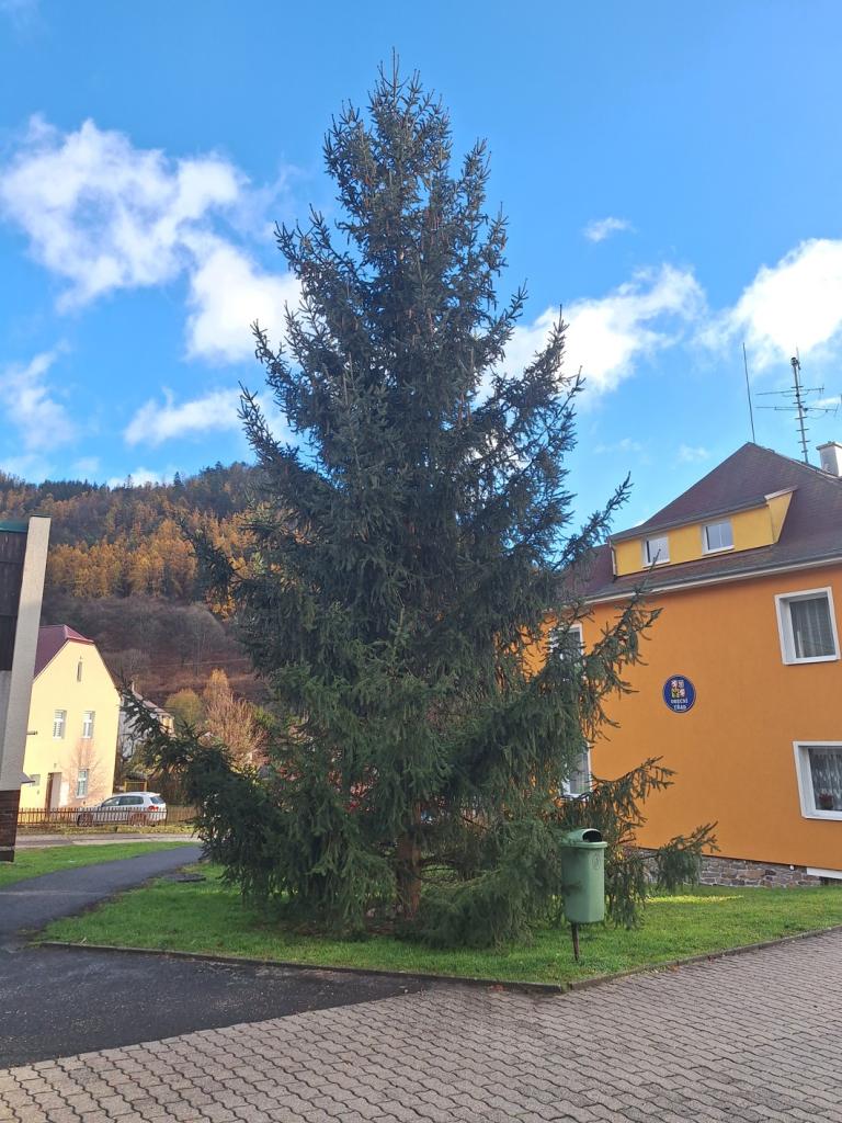 Nyní se strom ozdobí a 29.11.2024 bude slavnostně rozsvícen na již tradičních Vánočních trzích obce Perštejn.