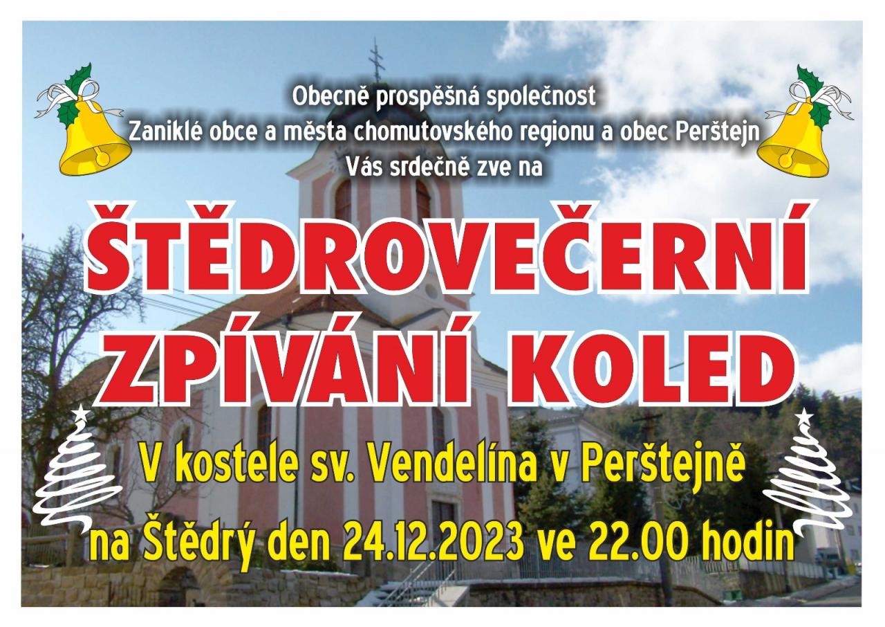 Zveme Vás na štědrovečerní zpívání koled v kostele sv. Vendelína v Perštejně na Štědrý den 24.12.2023 ve 22:00 hodin.